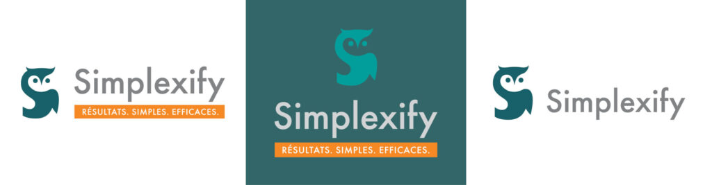 J’ai travaillé un peu le concept et proposé différentes variantes de hiboux. Finalement, on a choisi une chouette en forme de « S » pour référer directement au mot Simplexify. C’était également une façon de concevoir un dessin unique afin de personnaliser encore plus le concept.
