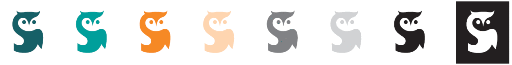 Comme mentionné plus haut, le symbole de la chouette peut être utilisé comme élément graphique. Elle est disponible dans les différentes couleurs de la palette pour permettre plus de versatilité. On peut aussi l’utiliser en transparence au besoin. Parce que ce n’est pas parce qu’on a établi certaines règles à suivre qu’on ne doit pas aussi s’amuser!