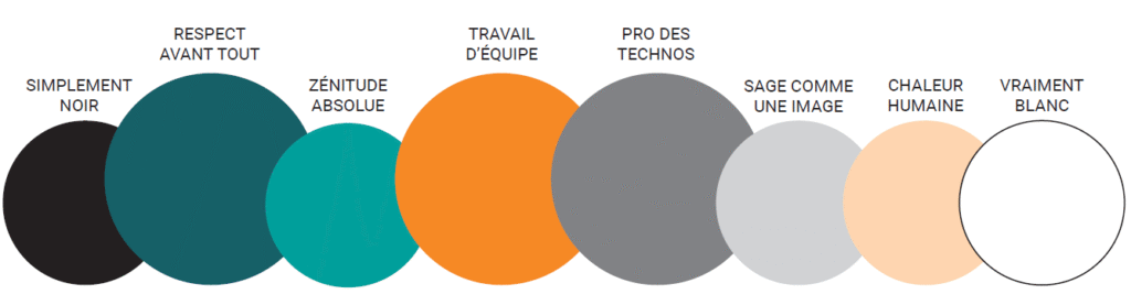 Si je résume la palette de couleurs choisie en une seule phrase, on pourrait dire qu’elle est à la fois rassurante et respectueuse, puis proactive et axée sur l’humain.